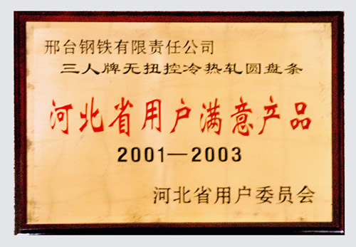 The Customer Satisfied Product of Hebei of hot rolled wire of Three Person Brand from 2001 to 2003.