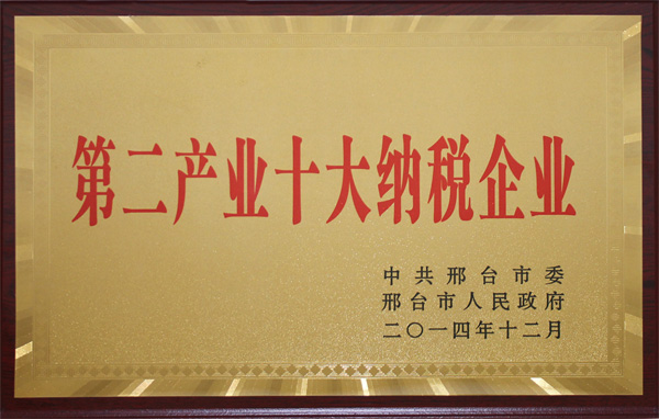 Over the years, Xingtai Steel adheres to fine products, extension industries, integrity management, paying tax in accordance with law, and achieves the sustainable development of the company. In December 2014, the CPC Xingtai Municipal Committee, Xingtai Municipal People's Government awarded Xingtai Steel the title of Ten Largest Tax Enterprises of the Second Industry.