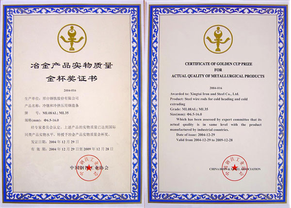 冷鐓和冷擠壓用鋼盤條ML08AL,ML35獲冶金產(chǎn)品實物質量金杯獎