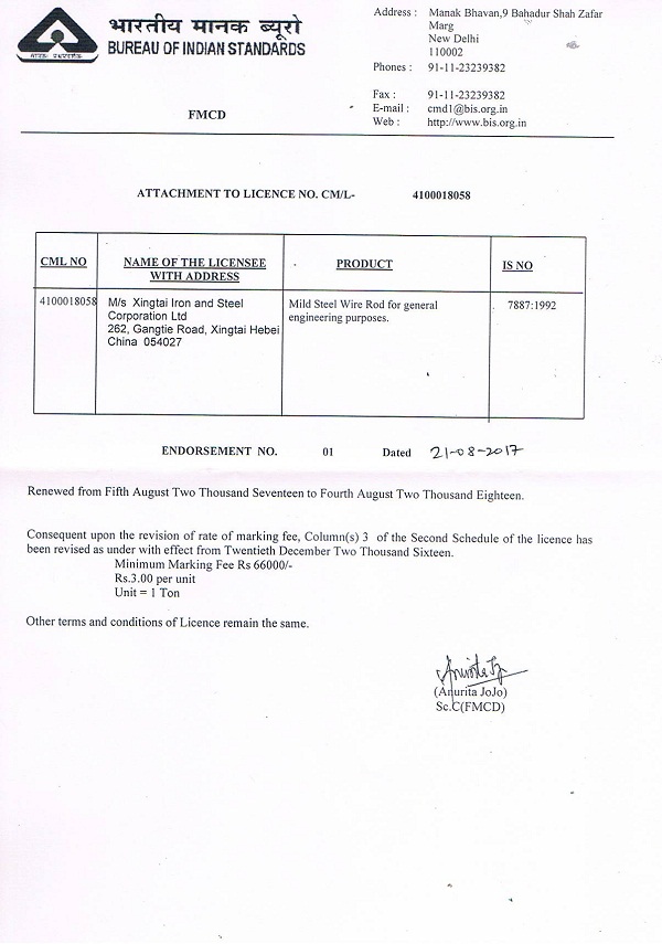 邢鋼申請印度BIS認(rèn)證的6個(gè)產(chǎn)品牌號(對應(yīng)邢鋼49個(gè)產(chǎn)品牌號)通過印度國家認(rèn)證