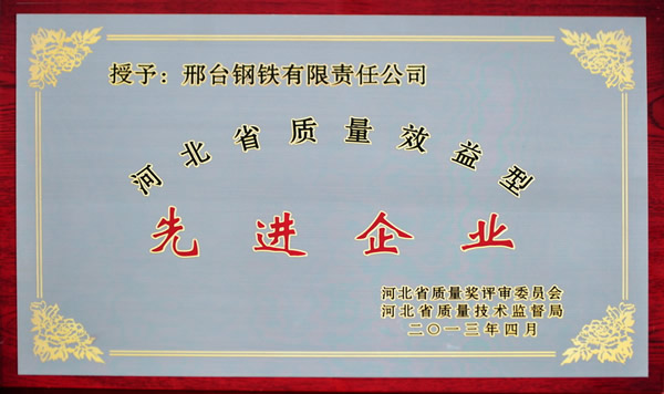5月27日,邢鋼榮獲2012年“河北省質(zhì)量效益型先進企業(yè)”稱號。