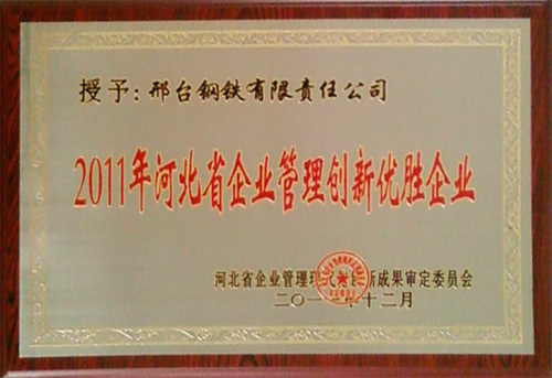 2012年4月25日,BSI公司(中國)在上海舉行了首次“卓越質(zhì)量管理獎(jiǎng)”頒獎(jiǎng)儀式,并授予邢臺(tái)鋼鐵有限責(zé)任公司“卓越質(zhì)量管理獎(jiǎng)”稱號(hào),同時(shí)獲獎(jiǎng)的還有寶鋼等其他10幾家企業(yè)。