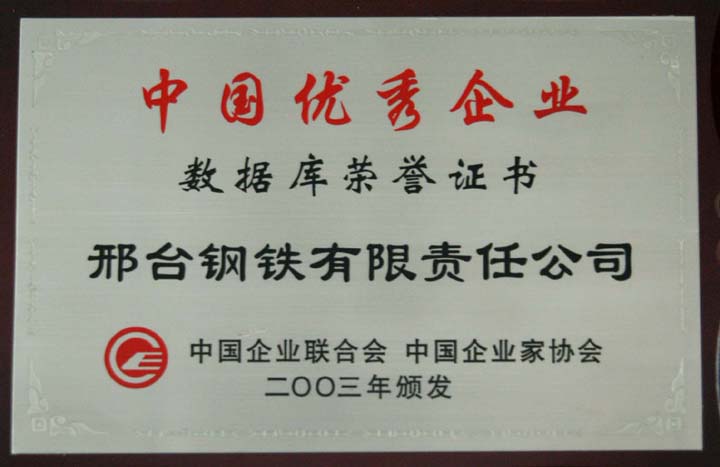 2003年8月,邢鋼被正式選入中國優(yōu)秀企業(yè)數(shù)據(jù)庫。