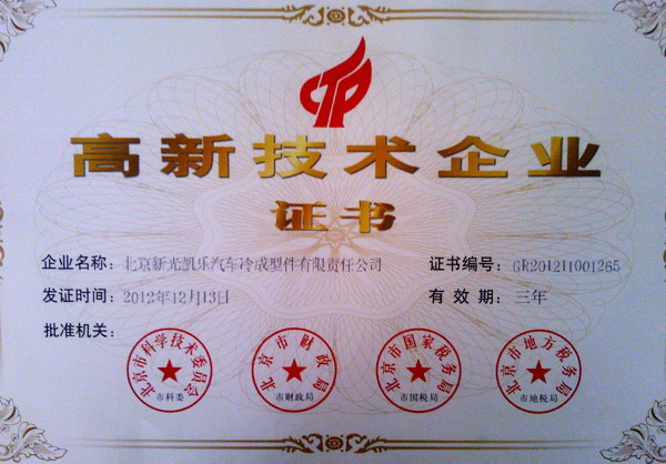 日前,北京新光凱樂公司榮獲國家高新技術(shù)企業(yè)稱號,同時取得國家高新技術(shù)企業(yè)證書。