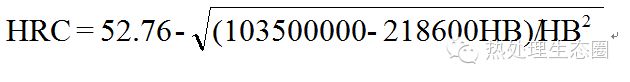 此公式用我國公布的黑色金屬硬度標(biāo)準(zhǔn)數(shù)據(jù)進(jìn)行換算,其HRC誤差基本上在?0.4HRC 范圍內(nèi),其最大誤差也僅士0.9HRC,計(jì)算的HV誤差最大為?15HV。
