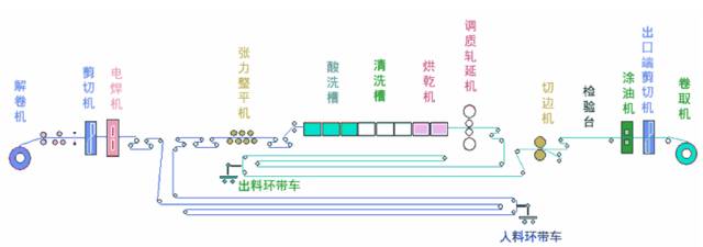 連續(xù)式酸洗是一種高產(chǎn)優(yōu)質(zhì),發(fā)展較快的酸洗方法,它是通過在機(jī)組上設(shè)置焊機(jī)和活套裝置,使工藝段在換卷時(shí)不停機(jī),保證機(jī)組連續(xù)運(yùn)行,但機(jī)組長,設(shè)備復(fù)雜,投資較高。連續(xù)式酸洗線主要有兩種形式,分別是連續(xù)臥式酸洗機(jī)組和連續(xù)塔式酸洗機(jī)組。