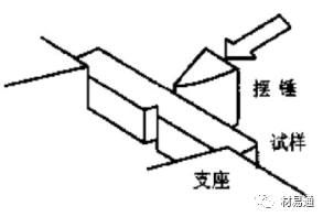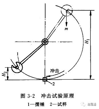 試驗(yàn)過程:將樣品水平放在試驗(yàn)機(jī)的支座上,缺口位于沖擊相背的方向。然后將具有一定質(zhì)量m的擺錘舉至一定高度H1,使其獲得一定位能mgH1