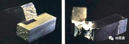 Titanic號(hào)鋼板(左圖)和近代船用鋼板(右圖)的沖擊試驗(yàn)結(jié)果