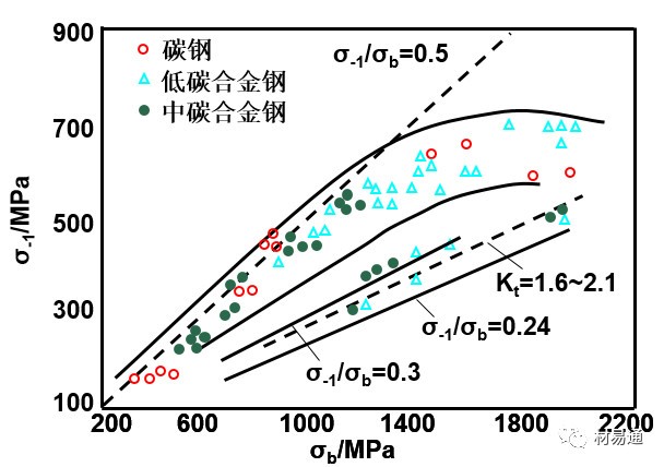 鋼的疲勞極限σ-1與抗拉強度σb的關系