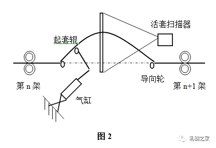活套是用來檢測和調(diào)節(jié)相鄰機架間速度關(guān)系從而實現(xiàn)無張力軋制的設(shè)備?;钐字饕苫钐讙呙杵?、起套輥及其調(diào)節(jié)器等組成,結(jié)構(gòu)如(圖2)所示。主要作用是根據(jù)檢測的套位信號來控制上游軋機的速度,實現(xiàn)自動控制系統(tǒng)。