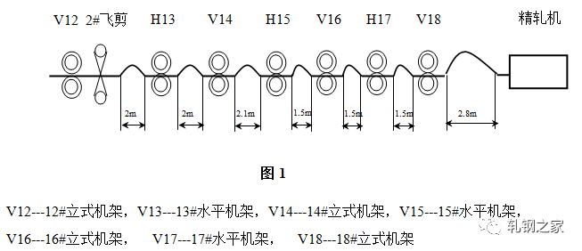 為了保證高速、穩(wěn)定地生產(chǎn),設(shè)計者在軋線共設(shè)置了七個活套裝置:兩個水平活套(在14#--15#機架間,18#--19#機架間)和五個立活套。布置情況及活套跨距如(圖1)所示。至于活套掃描器與活套臺的距離A,要根據(jù)活套的套量偏差H以及活套檢測角度α進(jìn)行初始調(diào)整及校準(zhǔn)。注意活套掃描器安裝位置不同,會影響到測得的實際值。其一般計算公式為A=H/(2×tgα/2)。在軋制某些規(guī)格時,有些活套可以不選用,那么此活套的控制不起作用,即起套輥不動作。