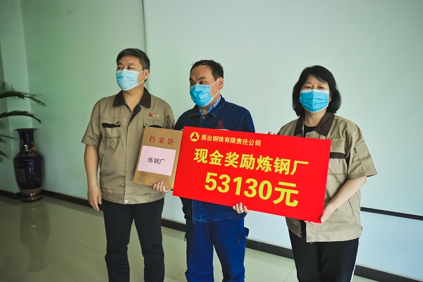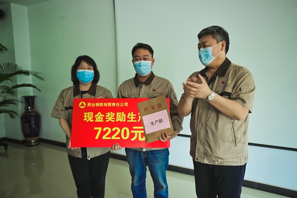 5月16日下午,公司207會議室傳來陣陣熱烈的掌聲,煉鐵廠、煉鋼廠、線材廠、焦化廠、生產(chǎn)部主管人員興高采烈地走到臺前,從公司領(lǐng)導(dǎo)張皓若、劉宏偉手中接過榮譽牌和沉墊墊的現(xiàn)金獎勵。此項舉措,是邢鋼公司對各生產(chǎn)指標連創(chuàng)新高后激勵政策的首次兌現(xiàn),對各單位在“雙效提升”工作中所付出艱辛努力的充分肯定。