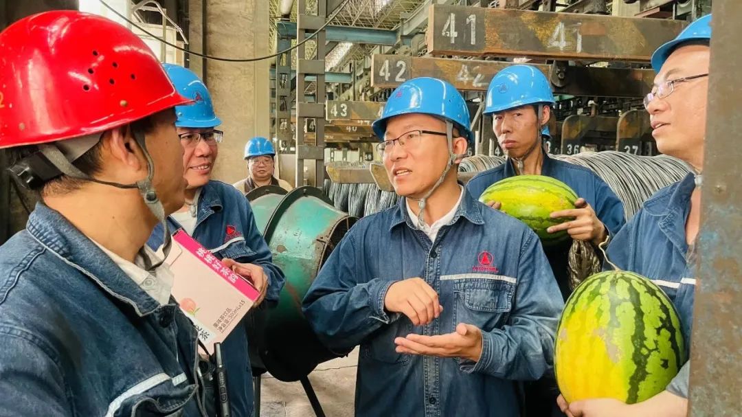 7月8日上午,為落實(shí)公司黨委書(shū)記、董事長(zhǎng)張育明關(guān)于“把防暑降溫、關(guān)愛(ài)員工、安全生產(chǎn)等抓細(xì)抓實(shí)”的工作要求,夏日送清涼活動(dòng)有序開(kāi)展,公司向煉鋼、線(xiàn)材、煉鐵、燒結(jié)、動(dòng)力、儲(chǔ)運(yùn)高溫下堅(jiān)守崗位的職工送去西瓜、飲料慰問(wèn)品及防暑降溫必備物資用品,把企業(yè)的關(guān)懷送到職工心坎里,對(duì)大家一直以來(lái)為邢鋼辛勤付出表達(dá)謝意,并囑咐在崗員工在堅(jiān)守崗位的同時(shí)注意勞逸結(jié)合,謹(jǐn)防高溫中暑,確保身體健康、安全生產(chǎn)。