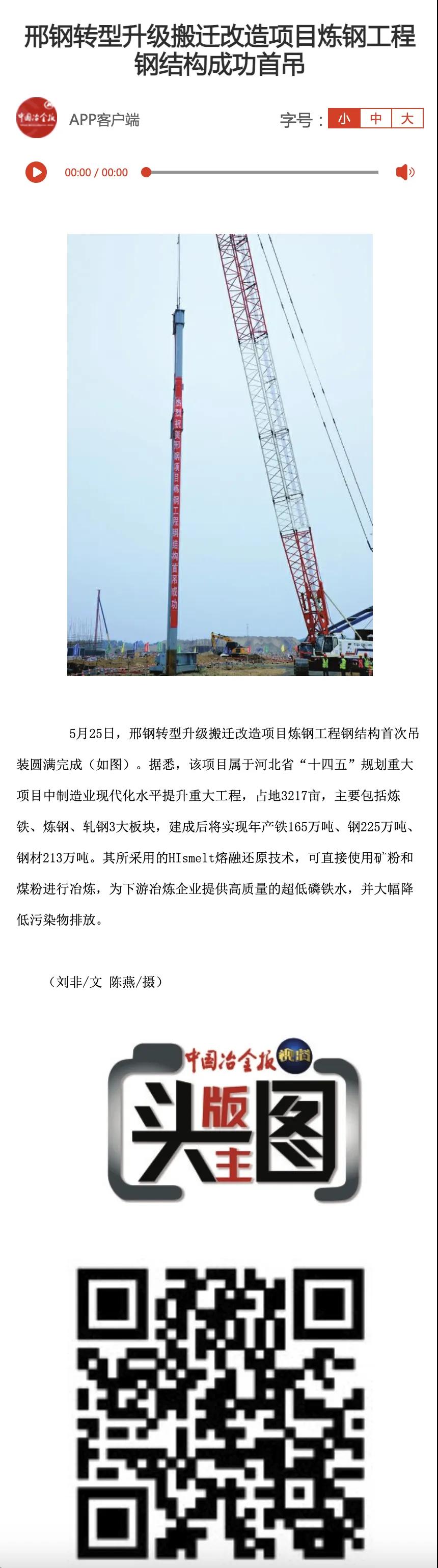 【媒體報(bào)道】中國(guó)冶金報(bào)“頭版主圖”報(bào)道邢鋼轉(zhuǎn)型升級(jí)項(xiàng)目進(jìn)展