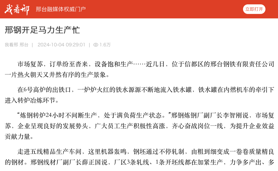 在 6 號高爐的出鐵口,一爐爐火紅的鐵水源源不斷地流入鐵水罐,鐵水罐在內燃機車的牽引下進入轉爐冶煉環(huán)節(jié)。“煉鋼轉爐 24 小時不間斷生產, 處于滿負荷生產狀態(tài)。”邢鋼煉鋼廠副 廠長李智剛說,市場復蘇,企業(yè)呈現(xiàn)良好的發(fā)展勢頭,廣大員工生產積極性高漲,齊心奮戰(zhàn)崗位一線,為提升企業(yè)效益貢獻力量。走進五線精品生產車間,這里機器轟鳴,鋼坯通過不停軋制,由粗到細變成一卷卷質量精良的鋼材。邢鋼線材廠副廠長薛正國說,廠區(qū) 3 條軋線、 1 條開坯線都在加緊生產,力爭多產 出、多收益。近年來,邢鋼致力于轉型升級促進高質量發(fā)展,專注于工業(yè)新材料的研發(fā)制造,公司優(yōu)特鋼比例達 100%,高新產品達 70%以上,擁有冷鐓鋼、純鐵、彈簧鋼等 18 大類 600 多個鋼種 3500 多種產品,廣泛應用于汽車、大跨 度橋梁、鐵路等國家優(yōu)先發(fā)展的領域。高品質特鋼產品讓邢鋼不斷贏得市場認可。前不久,在上海國際緊固件 工業(yè)博覽會和 2024 印尼雅加達東南亞緊固件專業(yè)展上,邢鋼與巴西、越南等多個國家的企業(yè)達成合作意向;邢鋼的“新能源汽車用高強度超高潔凈度冷鐓鋼技術創(chuàng)新及應用”項目經河北省質量 文化協(xié)會選拔、中國質量協(xié)會推薦,成功入圍 2024 年度國際質量創(chuàng)新大賽。“邢鋼專注高端鋼材生產,市場競爭力強,訂單充足,未來一個月的訂單已經基本排滿,多種規(guī)格產品訂單量增長。”在五線中控室,薛正國在電腦上翻看排單表,信心十足地說“,在市場大環(huán)境穩(wěn)定的情況下,訂單量有保證。”在采訪中,五線精品生產車間主任張志斌說,火力全開的生產景象令人振奮,他將把自己 20 年的工作經驗運用到生產中去,推動鋼材標準化生 產,滿足客戶的需求,不斷提升產品質量和邢鋼品牌滿意度。