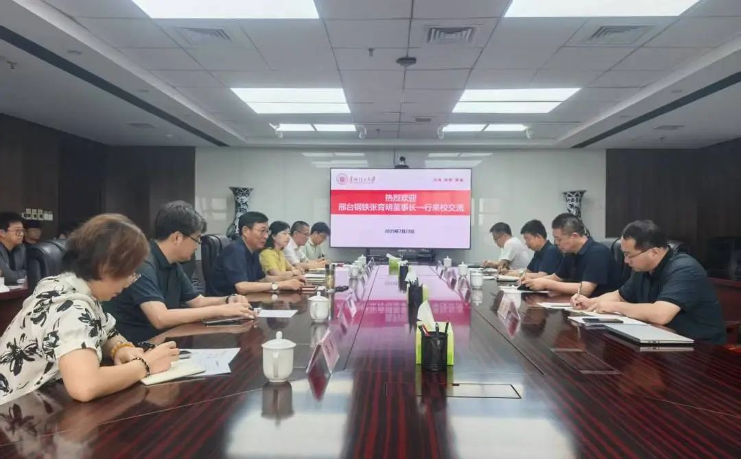 董事長張育明向校方簡要介紹了邢鋼的發(fā)展歷程及轉(zhuǎn)型升級搬遷改造項目,邢鋼作為深耕特鋼線材和深加工領(lǐng)域的高新技術(shù)企業(yè),始終致力于產(chǎn)品創(chuàng)新與技術(shù)升級。當前,邢鋼正全力推進轉(zhuǎn)型升級搬遷項目,對前沿技術(shù)成果轉(zhuǎn)化和高水平人才需求十分迫切,希望深化雙方合作,共同搭建產(chǎn)學研協(xié)同創(chuàng)新平臺,為邢鋼轉(zhuǎn)型升級與高質(zhì)量發(fā)展提供強有力的技術(shù)支撐。